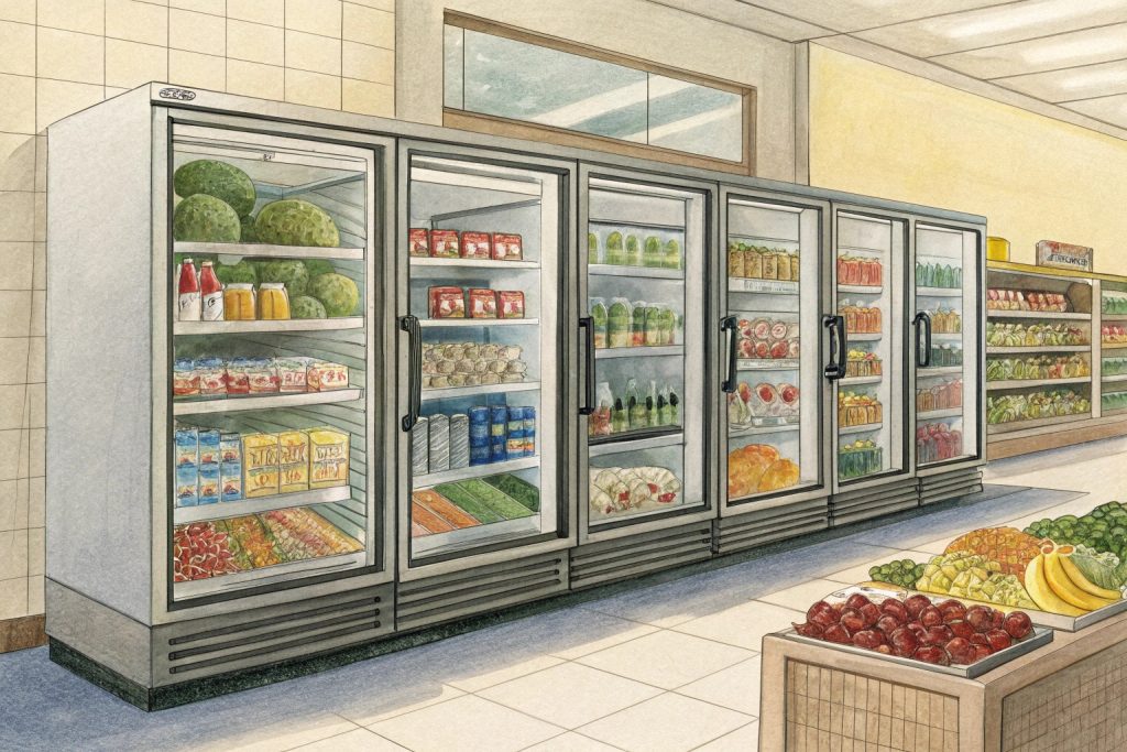 У комерційних холодильниках, вітринах і складах статична система охолодження працює трохи інакше. Випарник може бути схований у стінках або зверху. Він охолоджує поверхні, а вже ті віддають холод повітрю. Так повітря в камері стає холодним – повільно, зате рівномірно.