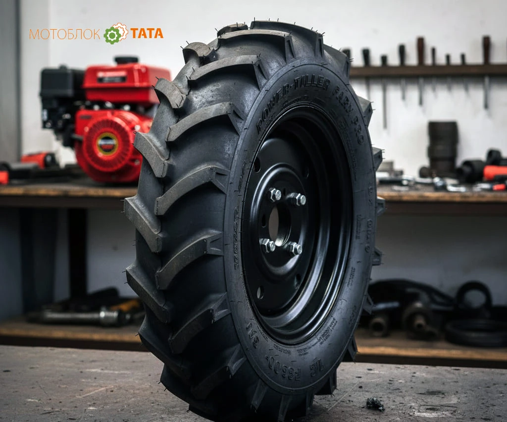 Прежде чем купить резину для мотоблока, необходимо обратить внимание на ряд факторов. Для начала нужно учесть диаметр колес. Большой размер приподнимает мотоблок, улучшает проходимость и помогает преодолевать препятствия. Узкая ширина (90-120 мм) удобна для работы между грядками и для деликатных работ, не повреждая растения. Широкий диаметр (150-200 мм) обеспечивает большую тягу и распределяет нагрузку на почву, предотвращая её уплотнение, что важно на рыхлых, влажных или песчаных грунтах. Поэтому для лёгких моделей обычно подходят покрышки на мотоблок диаметром 4-6 дюймов, а средние и тяжёлые – 8-12 дюймов.